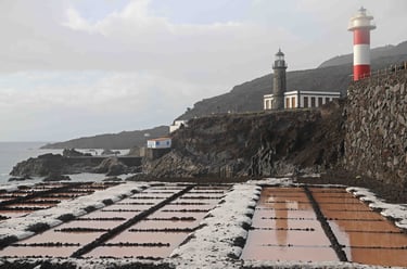 Enfin, si vous allez au sud de la route des volcans, pour voir les volcans San Antonio, le Teneguia et les salines, je vous recommande de vous arrêter également au Restaurante la Era à Los Canarios, le meilleur restaurant où l'on ait mangé sur l'ile. Parti d'un petit parking sur la route entre les salines et le Teneguia, l'idée c'était de grimper d'abord au Teneguia puis au San Antonio avant de redescendre aux Salines. Mais une tempête survenant pendant la montée m'oblige à revenir me réfugier dans la voiture après être monté au premier volcan. Puis nous profitons d'une accalmie pour en profiter pour aller visiter les Salines.