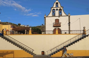 En remontant la côte ouest, on arrive au bourg d'Aguïmes, l'un des premiers lieux peuplés après la conquête de l'île par les Espagnols en 1491. De là, on peut remonter le barranco de Guayadeque pour découvrir un impressionnant ravin dont les parois se rapprochent au fur et