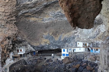 Si l'on descend plus bas le long de la côte, vers Tijarafe, et qu'on a de bons freins, on peut se risquer à descendre l'étroite route particulièrement pentue et abimée qui mène à Poris de Candelaria, un petit port niché dans une gigantesque alcôve qui mérite les sueurs froides du trajet. On peut aussi s'en approcher en bateau mais vous ne pourrez en profiter que quelques minutes à distance respectable de la côte.