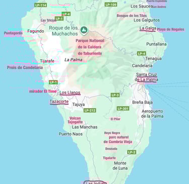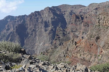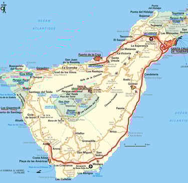 Après avoir atterri à l'aéroport de Ténérife sud, nous avons loué une voiture chez Cicar, la compagnie la plus intéressante (moins de 400€ sans caution pour 17 jours), et nous avons embarqué dans la foulée pour une semaine sur l'ile de la Palma. Peu urbanisée, l'ile est une réser-ve mondiale de la biosphère. Si elle n'est pas bien grande, étant essentiellement montagneuse, les distances peuvent cependant sembler longues. Aussi nous avons prévu 3 jours dans la capitale Santa Cruz de La Palma pour visiter une bonne partie de la moitié nord et 4 nuits à Los Indias dans le Sud-Ouest qui nous permettront de visiter le sud et et le nord-ouest de l'ile plus facilement accessible qu'en grimpant sur la Caldera de Taburiente (2 400m en partant de 0) si l'on venait de Santa Cruz .