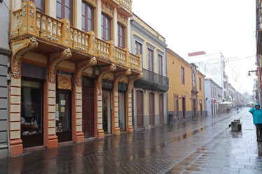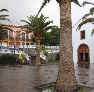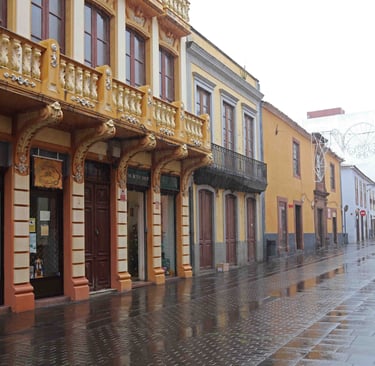 une rue de La Laguna sous la pluie le magnifique plafond de la cathédrale une rue après la pluie le très beau Museo IES Cabrera Pinto