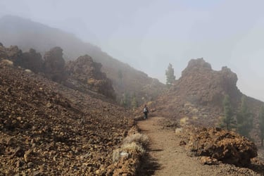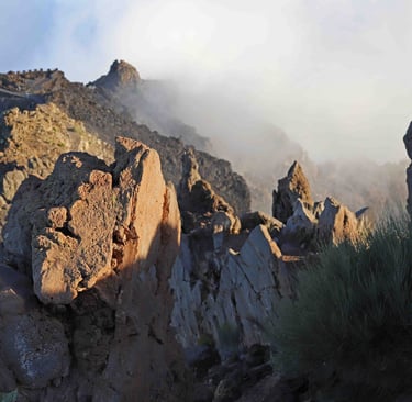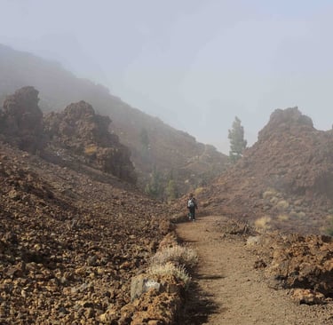 Puis nous faisons allons visiter le tour d'un cratère dans le brouillard pour avoir un avant goût du parc avant de prendre la route pour La Orotavia.