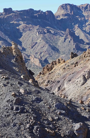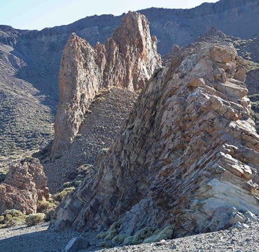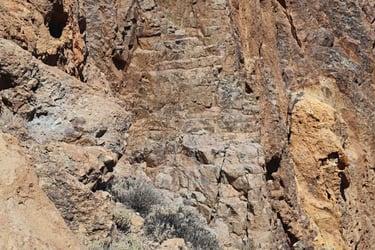 Au cours de la montée, nous rencontrons des rochers qui semblent avoir été travaillés par d'anciennes civilisations en hommage à leurs dieux, au milieu de paysages désertiques, jusqu'à ce qu'on arrive aux