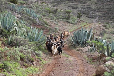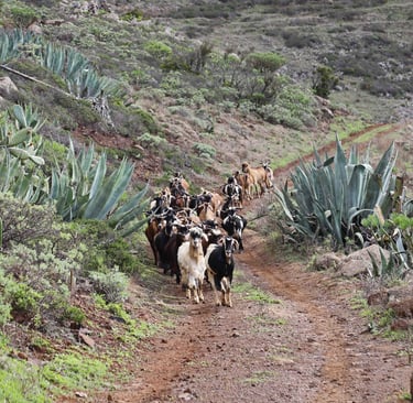Puis nous prenons un chemin au hasard qui nous permet de voir une pa-roi rocheuse déguisée en écorce d'arbre et de croiser de jolies biquettes qui bientôt seront peut-être servies en ragoût, le plat national des Cana-ries. Mais le chemin choisi est un cul de sac.