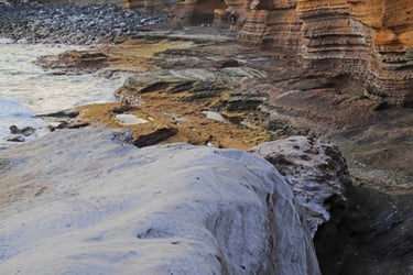 de l'aéroport et faire un tour sur la côte du côté d'Amarilla où l'on peut observer une rareté géologique très photogénique où l'on peut faire fonctionner l'imagination.