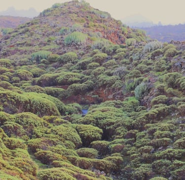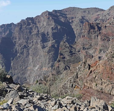 Bien qu'étant toutes d'origine volcanique et ayant le même climat, soleil et vent toute l'année, chaque ile jusqu'alors visitée a sa spécificité. Sur Fuerte-ventura, visitée en 2022, les paysages sont arides et minéraux. Peu de végétation, la terre est rougeâtre, les rochers aussi et inutile de chercher des plages de sable blanc. Ici c'est le sable noir qui a le pouvoir. Ca et là des cratères et des palmiers. Sur Lanzarote, à la suite de Fuerteventura, c'est la lave, les cactus... et les vignes qui prédominent. Des pieds de vignes protégés du vent par des murets. De la lave sous forme de coulées figées par le refroi-dissement de l'air ou sous forme de rochers alvéolés de toutes couleurs, des cratères aux parois impressionnantes. Mais aussi malheureusement, le lieu le plus spectaculaire, le Parc national de Timanfaya, n'est visitable qu'en bus aux vitres teintées, ce qui est particulièrement frustrant. Enfin, les séjours à Fuerteventura et à Lanzarote s'étant passé pendant l'épidémie de covid, certains lieux étaient fermés au public (églises, musées...). Pour Gran Canaries, que nous avons visité en 2023, l'adjectif qui caractérise cette ile c'est montagneux, suivi de son corollaire, randonnée. Sur cette ile, on peut également visiter des sites archéologiques témoignant d'une présence humaine antérieure à la construction des buildings qui dénature la côte à Maspalomas. A noter que, comme toute ile montagneuse, ici suivant l'altitude, on peut se trouver sous les nuages, dans les nuages ou au dessus. Enfin, en cet automne 2025, nous nous sommes consacré aux deux dernières iles d'importance de ce sympathique archipel, à savoir La Palma et Ténérife. Est-ce une impression due au fait que c'est notre dernier séjour ou la réalité, mais mon sentiment est que c'était notre meilleur séjour, en particulier Ténérife, malgré un temps très mitigé, comme vous pourrez le constater sur les photos. Dans l'ordre de mes préférences, je mettrais 1 Ténérife, 2 Gran Canarie, 3 les 3 autres iles à égalité. A noter que les 2 premières iles sont voisines et qu'on peut donc passer facilement de l'une à l'autre. Mais compter au moins deux semaines dans ce cas pour une vue d'ensemble.