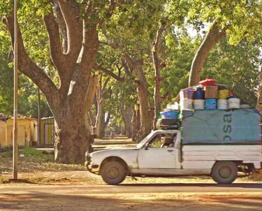 La région de la capitale du Sénégal a vu sa population décupler en quelques dizaines d'années. Du coup, l'urbanisation, en particulier la circulation automobile, n'a pas pu s'adapter, d'autant que le centre névralgique de la région se situe après un goulet d'étranglement. Ce qui provoque régulièrement des embouteillages. Heureusement, il y a ces minibus rafistolés de tous côtés dans lesquels on peut s'entasser.